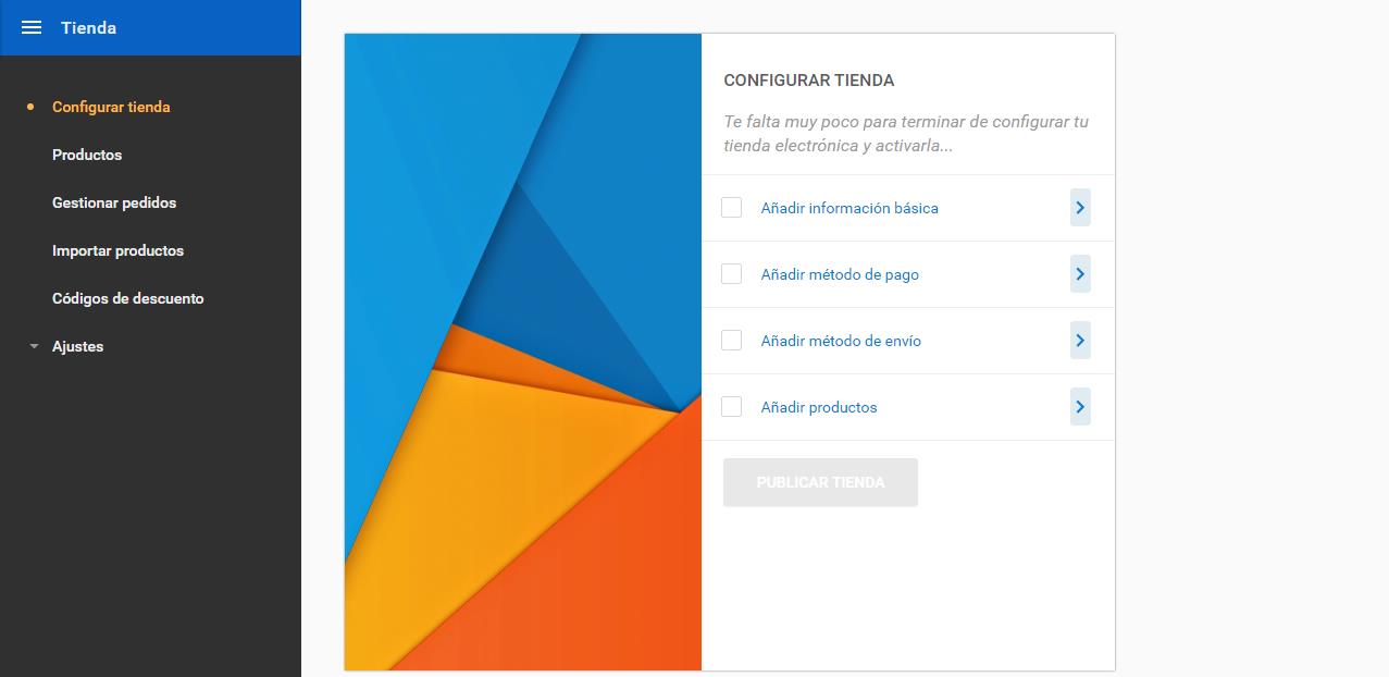 Desde esta sección puedes crear una tienda online dentro de tu página web.