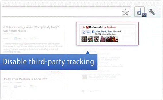 Se trata de un complemento desarrollado por antiguos trabajadores de Google y permite bloquear multitud de servicios dedicados al rastreo de datos. Su uso es muy sencillo ya que una vez que lo instalemos empezará a bloquear por defecto aquellos servicios que se dediquen al rastreo, como a redes sociales tales como Facebook o Twitter.